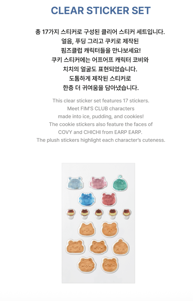 Introducing the LE SSERAFIM - FIM'S VACANCE WITH EARP EARP COLLABORATION OFFICIAL MD CLEAR STICKER SET, a must-have collectible for fans and stationery enthusiasts alike. This exclusive sticker set features vibrant, high-quality clear stickers adorned with charming designs inspired by the beloved LE SSERAFIM characters. Perfect for personalizing your notebooks, planners, and tech gadgets, these stickers capture the essence of fun and creativity associated with the FIM'S VACANCE theme. Whether you're a fan of LE SSERAFIM or simply love unique, artistic stickers, this collaboration with EARP EARP brings an irresistible touch of whimsy to your collection. Get yours today and let your imagination run wild!