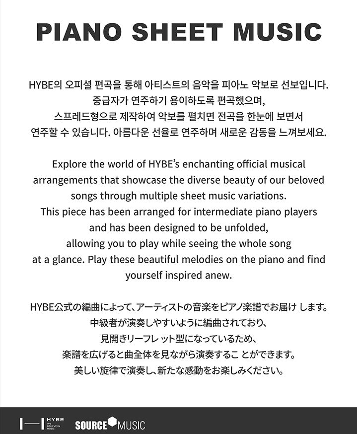 Introducing the LE SSERAFIM Piano Sheet Music Package, a must-have collection for music enthusiasts and fans of LE SSERAFIM alike. This beautifully curated package features accurate and easy-to-follow sheet music for all their hit songs, perfect for pianists of all skill levels. Each piece captures the essence of LE SSERAFIM's captivating melodies and rhythms, allowing you to recreate their enchanting sounds right at home. Whether you're a budding musician or a seasoned performer, this piano sheet music package is your gateway to mastering the music of LE SSERAFIM. Elevate your musical journey and let the music of LE SSERAFIM inspire and delight you.