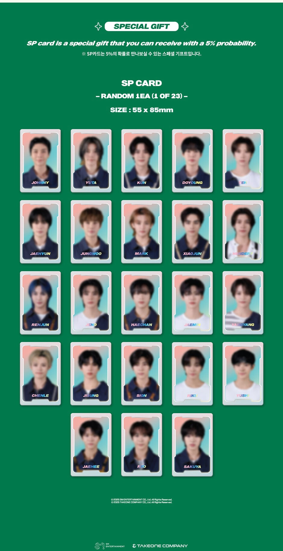 - 1 random special photocard (5% chance)