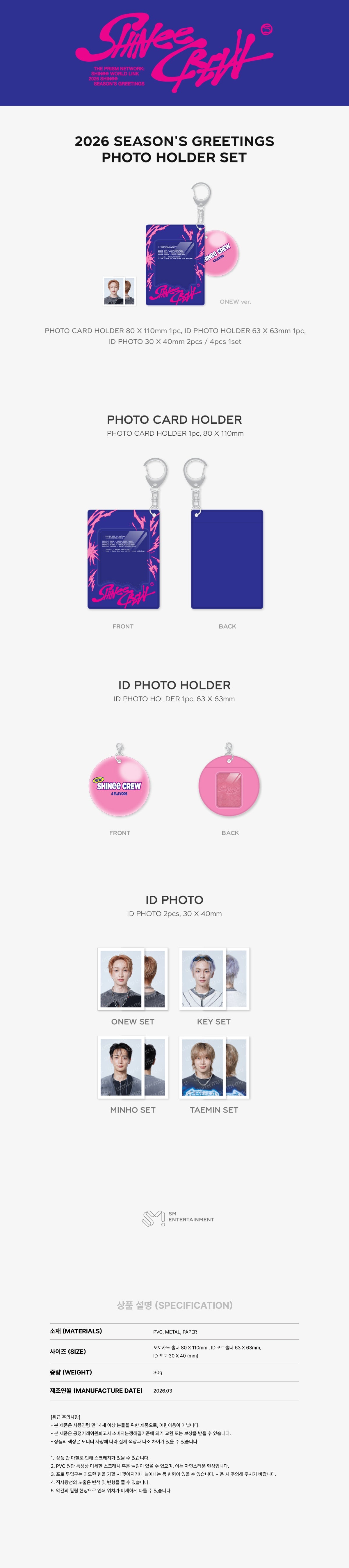 Introducing the "Shinee - 2026 SM Artist Season's Greetings Official MD Photo Holder Set," a must-have collector's item for Shawols and K-pop enthusiasts alike. Celebrate the new year with the iconic charm of SHINee, beautifully captured in this exclusive photo holder set. Each set features stunning, high-quality images of the legendary group, showcasing their charisma and style in a series of captivating shots.