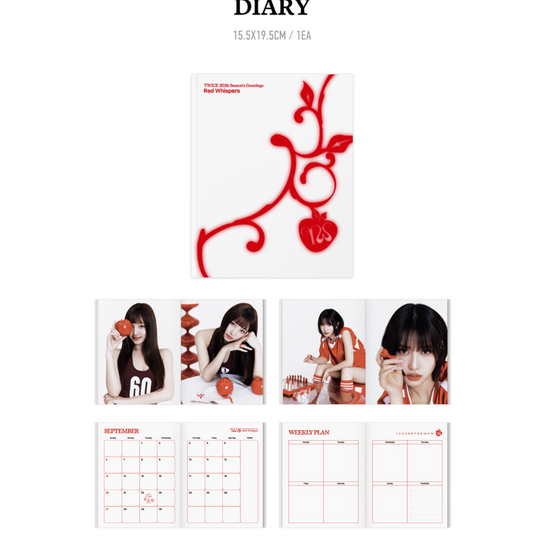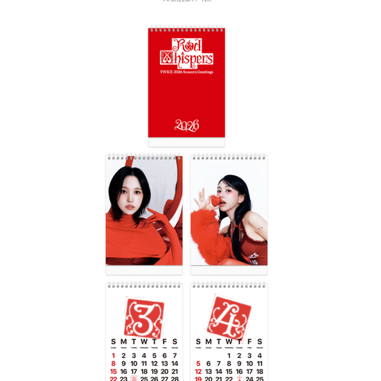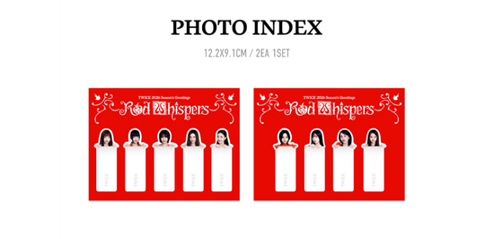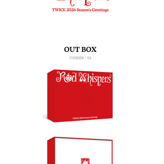 Introducing the "TWICE - RED WHISPERS 2026 SEASON'S GREETINGS," a captivating collection designed to make your year unforgettable. This exclusive seasonal package from the iconic K-pop group TWICE brings together elegance and charm, capturing the essence of the group's vibrant personality and warmth. Inside, you'll find a beautifully crafted calendar filled with stunning photos of the members, each image resonating with the theme of "Red Whispers," symbolizing passion, love, and festivity. Accompanying the calendar are personalized greeting cards, a planner for your 2026 adventures, and limited-edition photo cards that are perfect for any collector. Celebrate the year with TWICE and let their joyful spirit inspire your every day. Whether you're a devoted ONCE or new to the TWICE phenomenon, this Season's Greetings set is a must-have for anyone wanting to infuse a touch of magic and melody into their year. Don't miss out on this enchanting collection – it's more than just a keepsake; it's a celebration of one of the most beloved groups in the world.