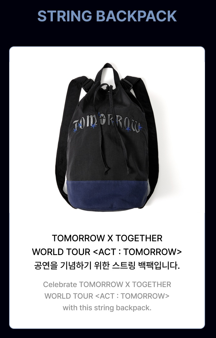 TXT - ACT : Tomorrow World Tour Official MD String Backpack