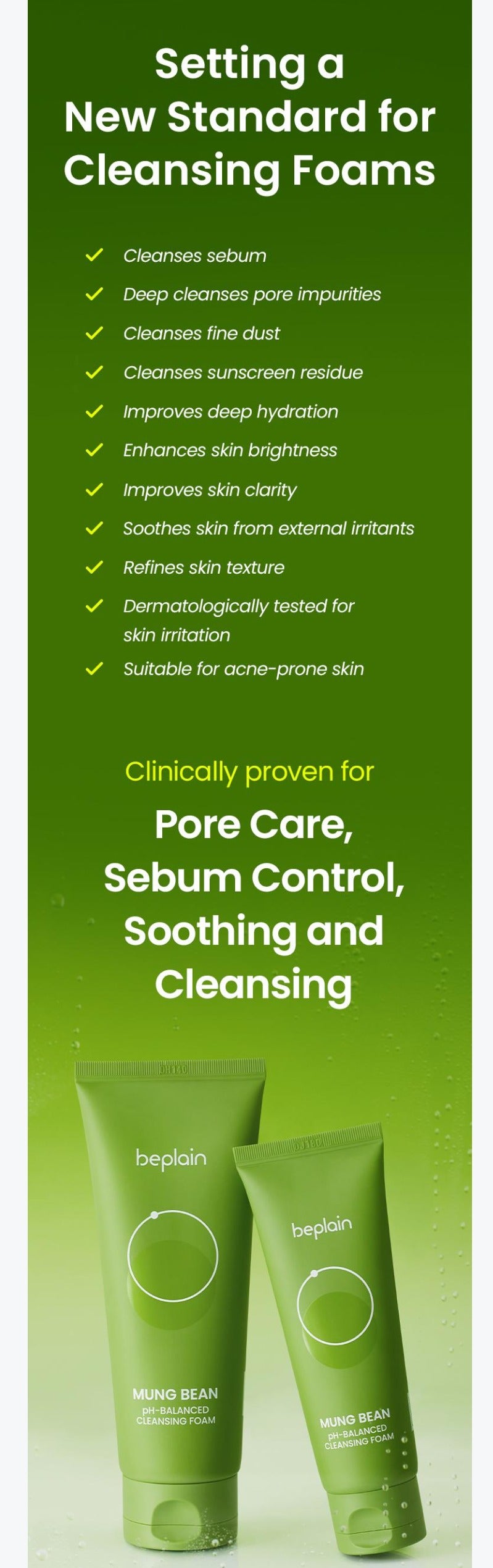 BEPLAIN - Mung Bean Ph-Balancing Cleansing Foam 160ml+160ml