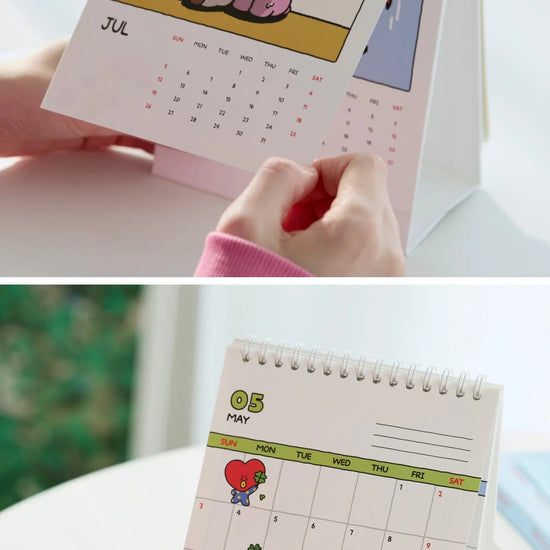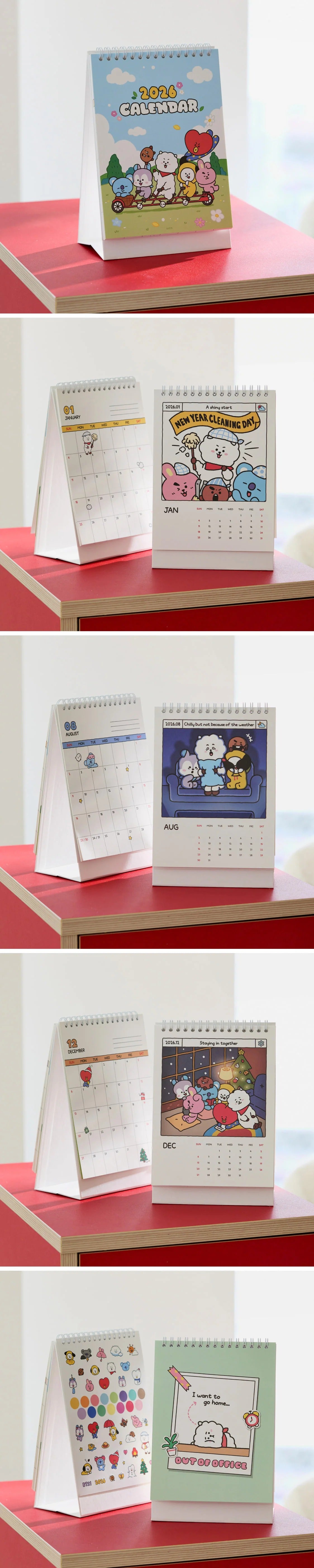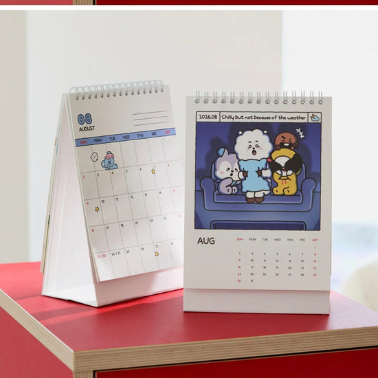 Introducing the BT21 - 2026 Desk Calendar: your ultimate companion for staying organized and inspired throughout the year! Featuring adorable artwork of your favorite BT21 characters, this vibrant desk calendar adds a playful touch to any workspace or home office. Each month showcases a new, delightful illustration that brings charm and personality to your daily planning. With ample space for notes and reminders, it's perfect for keeping track of appointments, birthdays, and important events. Crafted with high-quality materials, the BT21 - 2026 Desk Calendar is not only a practical tool but also a collectible item for fans of all ages. Stay on top of your schedule and let your favorite BT21 characters brighten every day of the year!