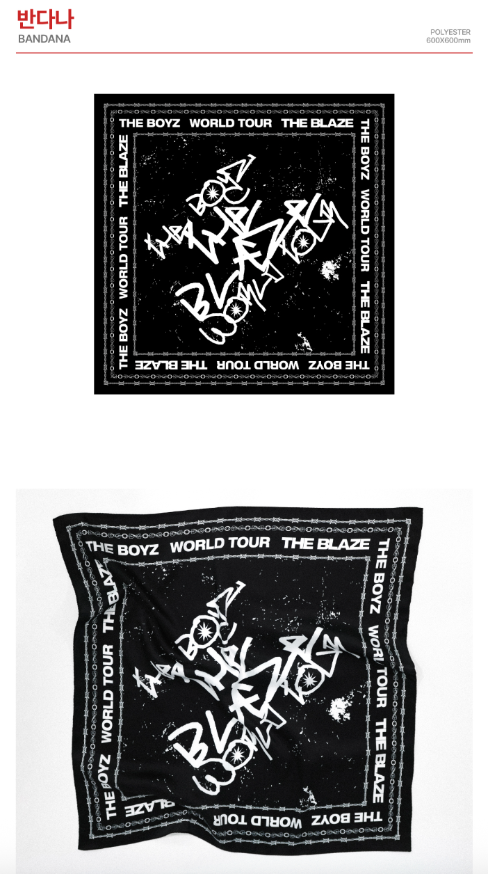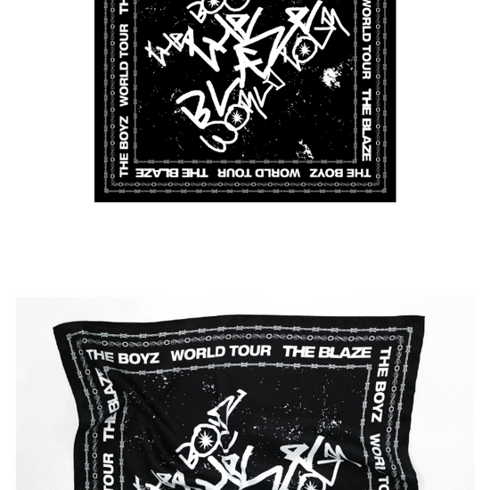 Introducing THE BOYZ - THE BLAZE THE BOYZ WORLD TOUR IN SEOUL OFFICIAL MD BANDANA, a must-have accessory for fans of THE BOYZ. This exclusive bandana is designed to celebrate the electrifying energy of THE BLAZE World Tour. Crafted from high-quality, soft fabric, it features vibrant graphics and iconic emblems synonymous with the group's dynamic performances. Perfect for wearing or displaying, this bandana is a versatile piece that adds a touch of K-pop flair to any outfit. Whether you’re at a concert, meeting with friends, or simply showing your fan pride, this bandana is the ultimate addition to your collection. Get ready to rock your fandom in style!