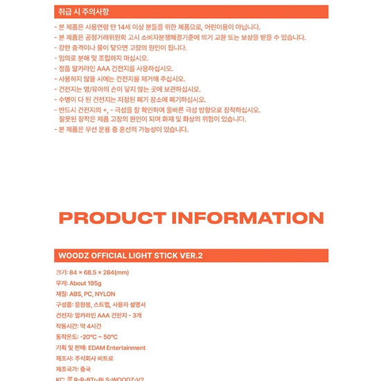 Introducing the WOODZ - OFFICIAL LIGHT STICK VER.2, a must-have accessory for every dedicated WOODZ fan. This sleek and stylish light stick boasts an ergonomic design, making it comfortable to hold during concerts, fan meetings, or any other occasion where you want to show your support. The upgraded version features vibrant, multicolored LED lights that can be customized with dynamic lighting modes to match your mood or the rhythm of WOODZ’s music. Crafted from high-quality materials, this durable light stick ensures long-lasting performance. Plus, its compact size allows for easy portability, so you can take it with you wherever you go. Illuminate your fan experience with the WOODZ - OFFICIAL LIGHT STICK VER.2 and shine your light brighter than ever before!