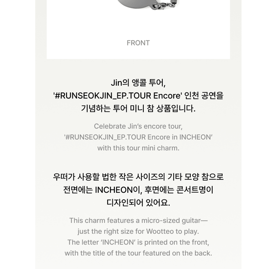 - BTS JIN - #RUNSEOKJIN_EP.TOUR_ENCORE OFFICIAL MD TOUR MINI CHARM INCHEON