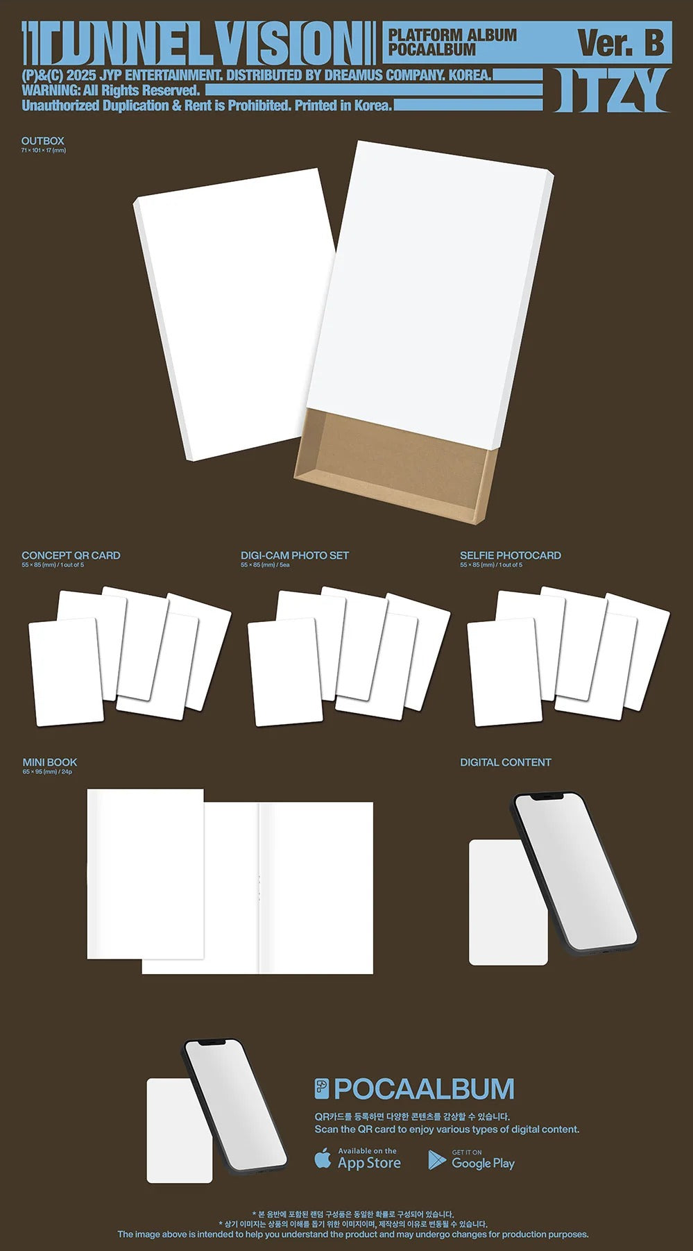 Introducing the ITZY - TUNNEL VISION MINI ALBUM, a must-have collectible for every ITZY fan! Immerse yourself in a captivating world with the enchanting mini album that showcases a dynamic range of music, captivating lyrics, and unparalleled energy that defines ITZY's unique style. This special photobook version set includes a beautifully crafted photobook filled with stunning, high-quality images of the band, offering a mesmerizing glimpse into the artistry and charisma of each member. Elevate your music collection with this exclusive set—perfect for long-time fans and new listeners alike. Don't miss out on owning a piece of ITZY magic!