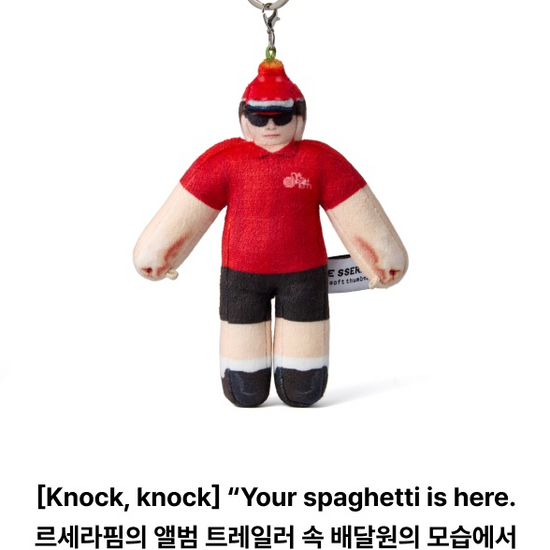 Introducing the LE SSERAFIM x SOFT THUMBNAIL Official MD Delivery Person Keyring, a charming accessory that perfectly combines functionality with fandom flair. This exclusive keyring is designed for dedicated fans of LE SSERAFIM, featuring a miniature, detailed delivery person figurine that captures the band’s playful spirit and creativity. Made with high-quality materials, the keyring is durable yet lightweight, making it a perfect everyday addition to your keys or bags. Whether you're a collector or looking for the perfect gift for a LE SSERAFIM fan, this keyring is a delightful reminder of the joy their music brings. Don't miss out on owning a piece of official merchandise that represents your love for the band in style!