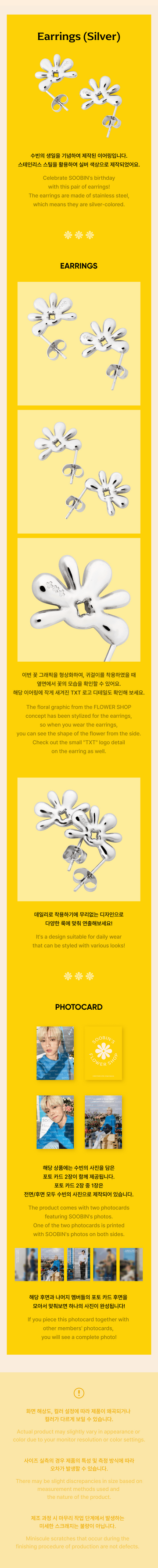 PAPER / PHOTOBOOK - 210*297mm, PHOTOCARD SET - 70*100mm, POSTCARD 1 - 100*100m, POSTCARD 2 - 150*117mm, POSTCARD 3 - 100*150mm, POSTER - 210*297mm, STICKER SET - 60*60mm, FLOWER LETTER - 141*147mm