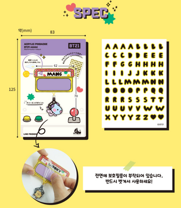Introducing the BT21 - MININI Acrylic Pin Badge Square, a charming accessory that lets you carry your favorite BT21 character with you wherever you go! Crafted with high-quality acrylic, this pin badge features a vibrant, square design that beautifully showcases the adorable MININI character, making it a perfect addition to any fan's collection. The sturdy metal pin ensures secure attachment to your bag, jacket, or hat, allowing you to express your love for BT21 in style. Whether you're a seasoned collector or new to the BT21 universe, this acrylic pin badge is a must-have for adding a touch of playful charm to your everyday look.