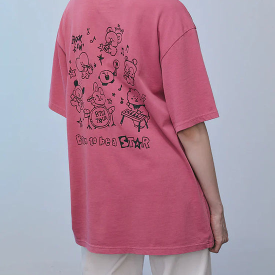 BTS x BT21 - Minini Band Short Sleeve T-Shirts Magenta Pink