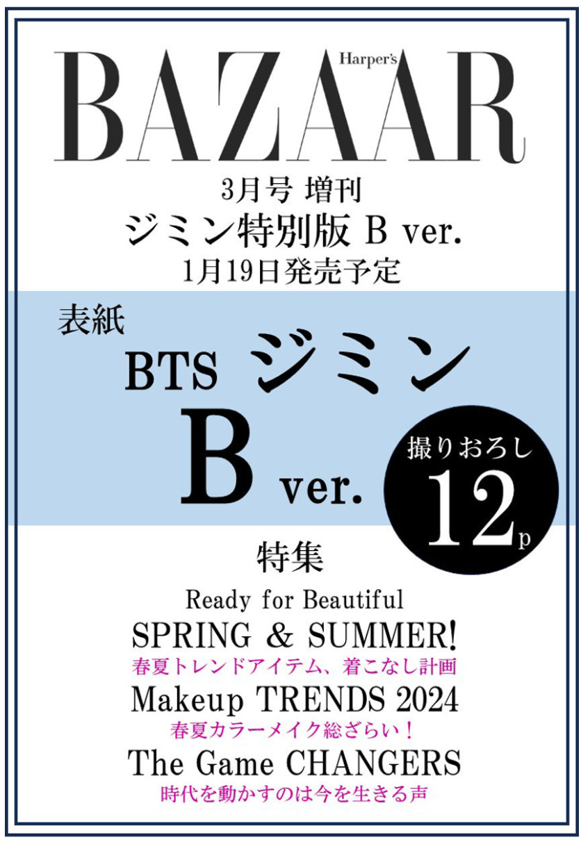 BTS Jimin On Cover Of Harper Bazaar Japan Magazine Special Edition [March 2024 Edition]
