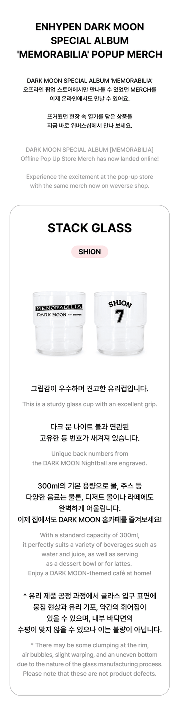 ENHYPEN - Memorabilia Dark Moon Special Album Official MD Stack Glass Shion
