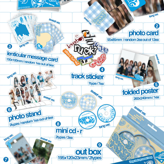 Introducing the "IFEYE - SWEET TANG 2nd EP Album," an exquisite collection for fans and collectors alike. Dive into an immersive visual journey with this beautifully crafted photobook, capturing the essence and artistry of IFEYE's anticipated sophomore EP, "SWEET TANG." This set includes stunning, high-quality photographs that provide an intimate look at the creative process, behind-the-scenes moments, and the vibrant personality of the group. Each page tells a story, blending music and visuals into a harmonious experience. A must-have for enthusiasts wanting to cherish and celebrate this special release in true style.