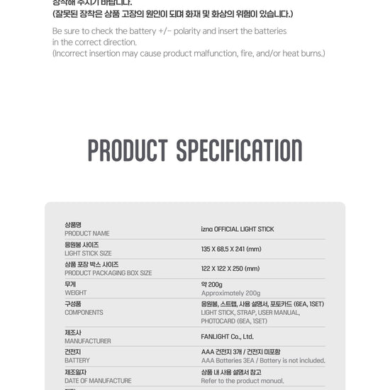 The IZNA - OFFICIAL LIGHT STICK is the ultimate fan accessory for devoted IZNA enthusiasts. Elegantly designed, this sleek light stick features dynamic LED lighting that illuminates in a spectrum of vibrant colors, perfectly synchronized with IZNA's energetic performances. Compact and lightweight, it's perfect for concerts, fan meetups, or home celebrations. With its intuitive control system, you can effortlessly switch between modes to match the music and mood. The ergonomic handle ensures a comfortable grip for hours of waving and cheering. Show your support for IZNA with this essential, officially licensed memorabilia that declares your fandom in glowing style.