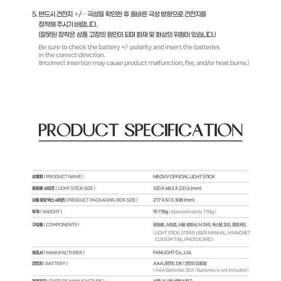 Introducing the MEOVV - Official Light Stick, a must-have accessory for every dedicated fan. Designed with the latest technology, this sleek and stylish light stick illuminates with vivid colors that perfectly synchronize with your favorite performances. Featuring customizable lighting modes and easy-to-use controls, it enhances your concert experience by allowing you to express your enthusiasm and unity with other fans. Compact and lightweight, it's easy to carry to any event, and the durable build ensures it withstands the most energetic celebrations. Celebrate your passion and light up the venue with the MEOVV - Official Light Stick.