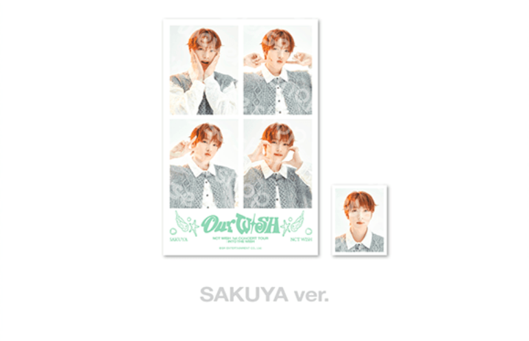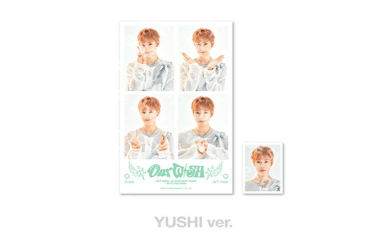 The NCT WISH - INTO THE WISH OUR WISH 1ST CONCERT TOUR OFFICIAL MD 4 CUT+ID PHOTO SET is a must-have collectible for any devoted NCT fan. This exclusive set captures the unforgettable moments from the band's first concert tour, offering a unique glimpse into the energy and charisma of NCT. The set includes a series of vibrant, high-quality 4-cut photo strips and ID-sized photos that showcase each member's individual charm and style. Perfect for personal keepsakes or sharing with fellow fans, this official merchandise set provides a tangible connection to the excitement of the live concert experience. Celebrate your fandom and bring home a piece of NCT magic with this beautifully crafted photo set.