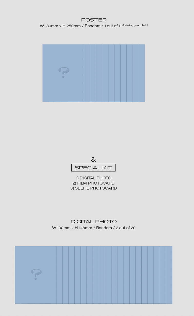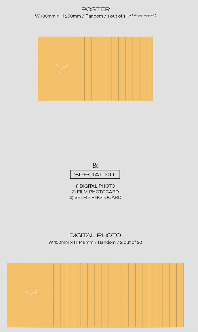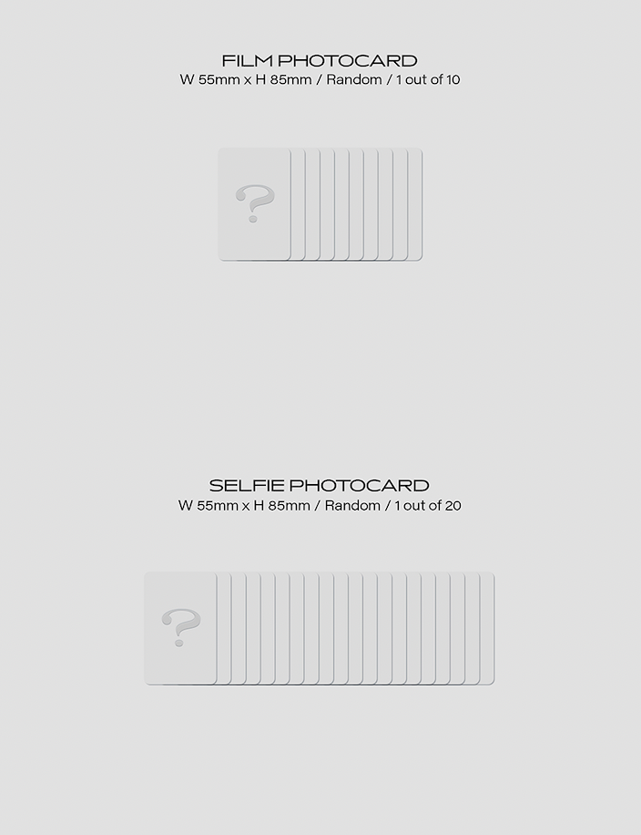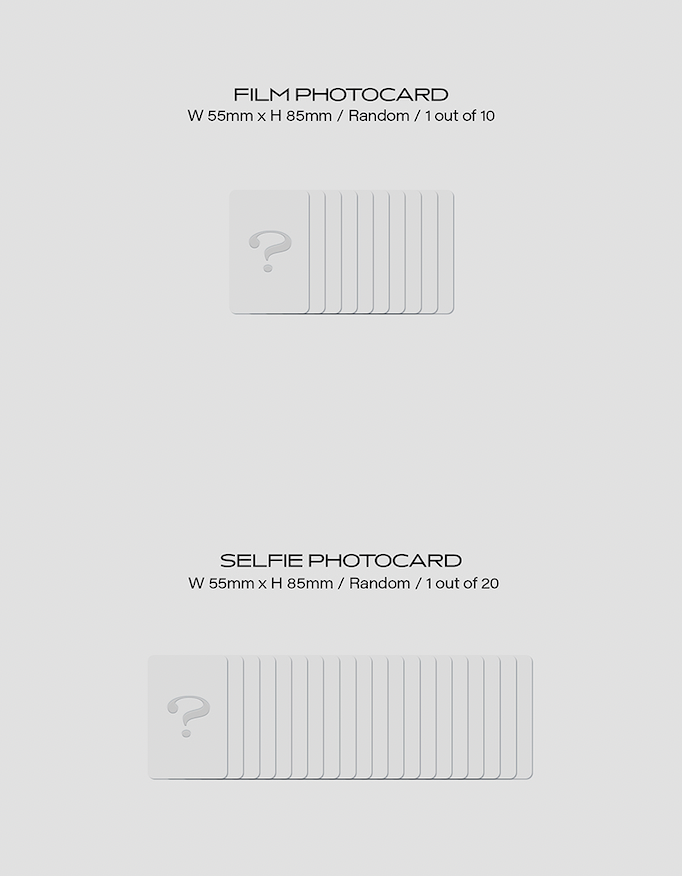 - SELFIE PHOTOCARD : W 55mm x H 85mm / 1 OUT OF 20 RANDOM