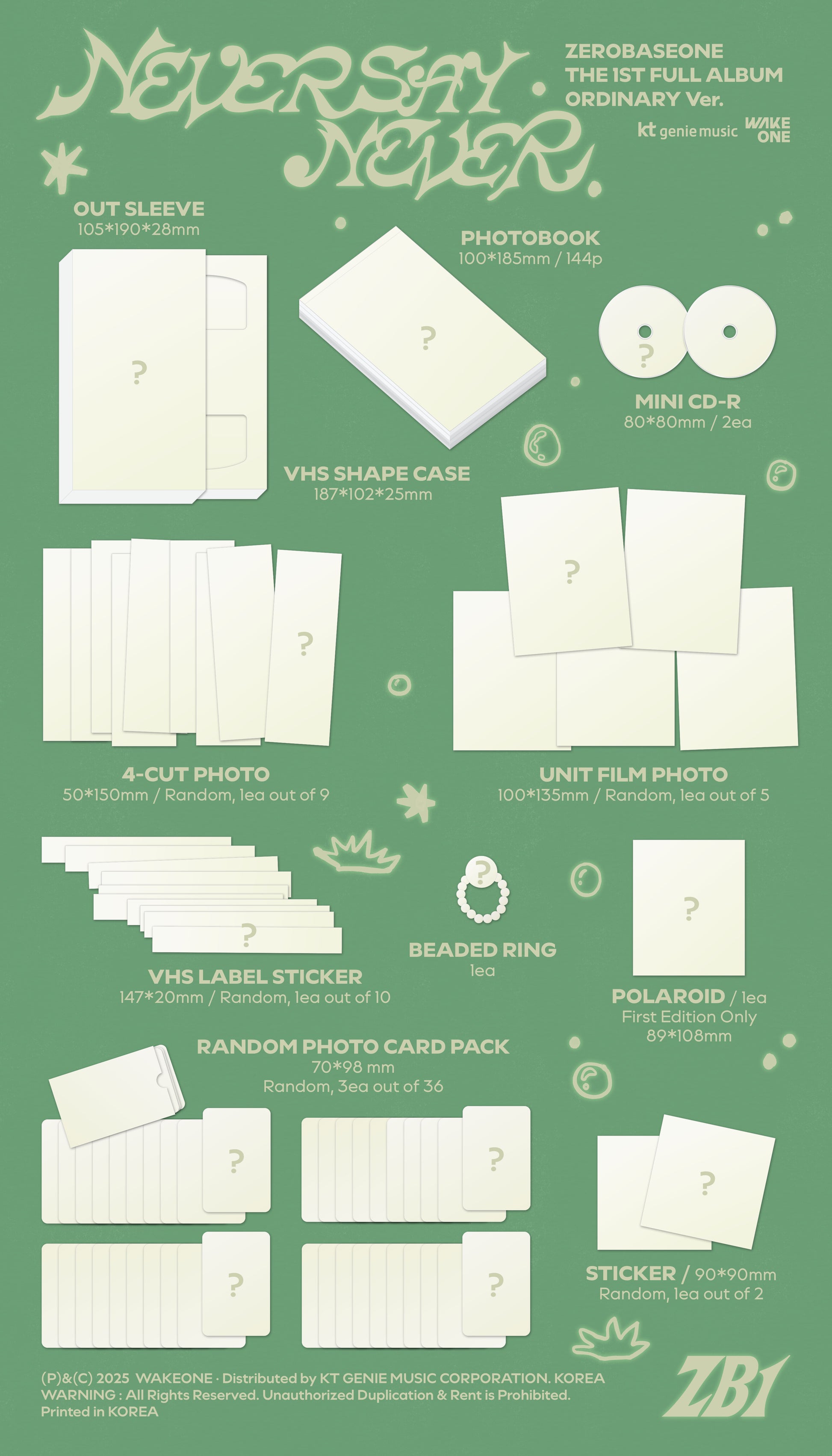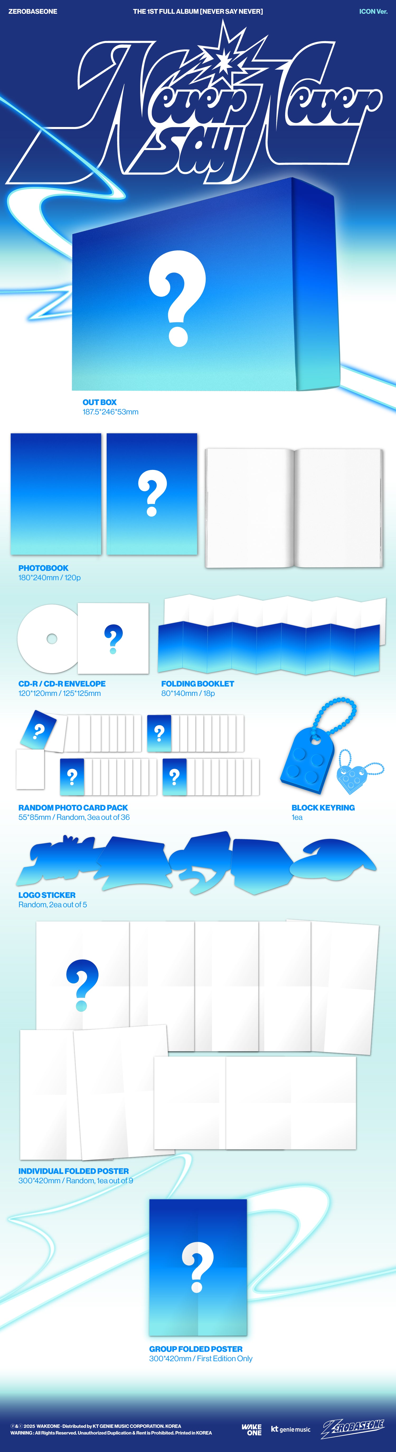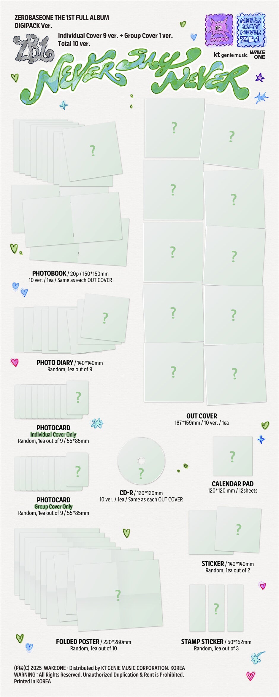 The ZEROBASEONE - NEVER SAY NEVER 1ST FULL ALBUM is an exquisite collector’s item for fans and music enthusiasts alike. This visually stunning set provides an immersive experience into the world of ZEROBASEONE, capturing the essence and creativity of the band's first full album. The photobook version features high-quality, exclusive photographs that offer a behind-the-scenes look at the making of the album, along with never-before-seen images of the band members in candid and artistic settings. Accompanying the photobook is a beautifully designed album that houses ZEROBASEONE’s breakthrough tracks, epitomizing their signature style and musical evolution. This set is a must-have for admirers who cherish both the auditory and visual artistry of ZEROBASEONE, making it a perfect addition to any collection.